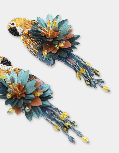 The Birds collection is an ode to the stunning beauty of the avian world, from kingfishers to cardinals, robins to peacocks. Like the birds who inspired them, these joyful, handmade pieces come alive with colour, texture, and iridescence.