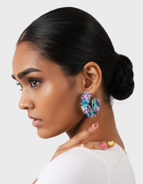 The Olivia Dar floral hoops, handmade by Sangeeta, showcase Indian craftsmanship and the simple beauty of flowers.