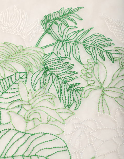 This white choker necklace is fully hand-embroidered with seed beads, beautifully enhancing sun-kissed skin. Wear it alone or layered, directly on the skin or over a blouse, for a chic and radiant look.