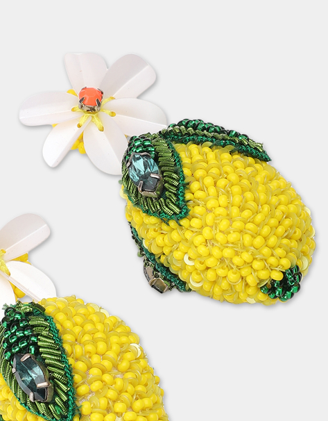 Composition: Seed beads, and sequins, leather backing and gold plated brass post.