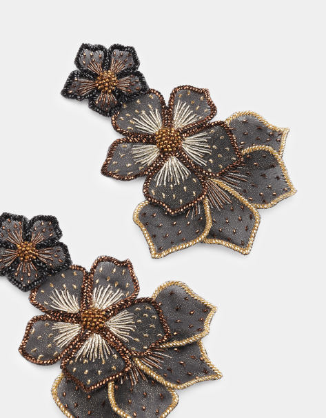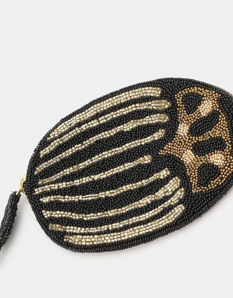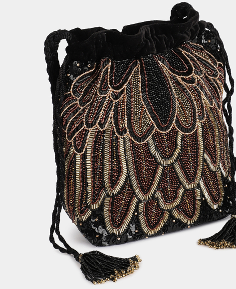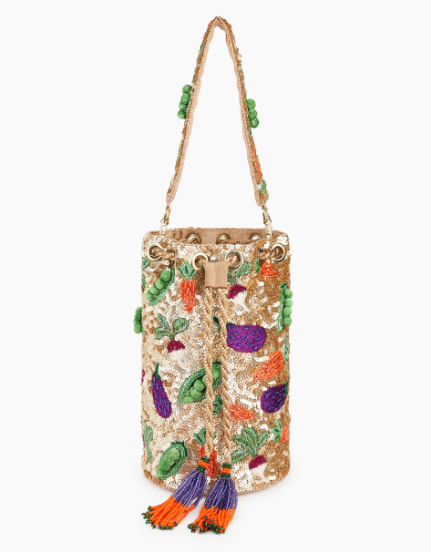 A bag to be worn like a jewel: the Diamond Ikat Bag in purple/bronze, delicately hand-embroidered and inspired by traditional Uzbek Ikat patterns.