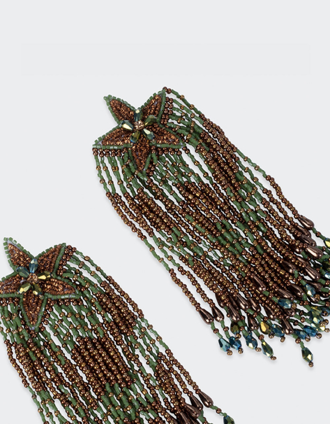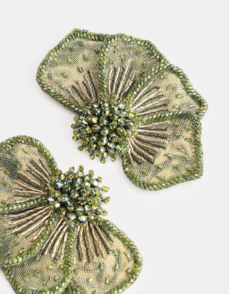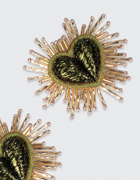 A bag to be worn like a jewel: the Diamond Ikat Bag in khaki, delicately hand-embroidered and inspired by traditional Uzbek Ikat patterns.