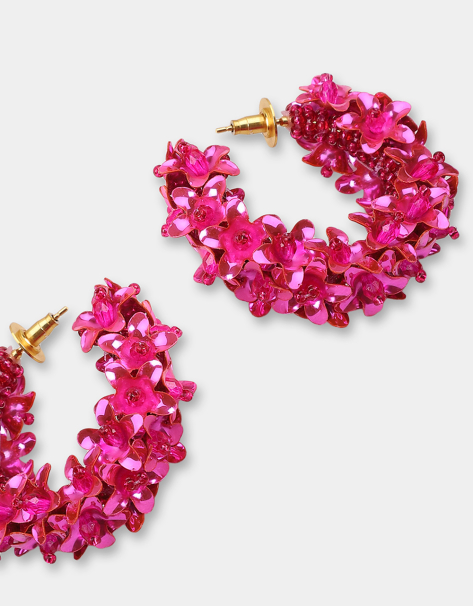 New design, structured bag, to be worn over the shoulder or on the arm. This fuchsia Feather bucket bag has been intricately hand-embroidered with glass beads to mimic the bird's plumage.