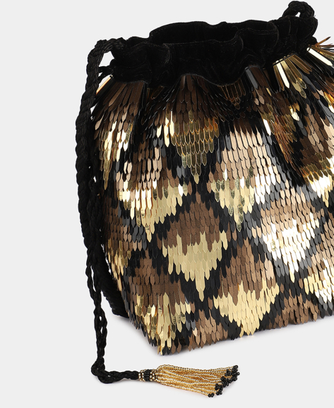 Hand embroidered black Feather Sequins Jewelry Bag.