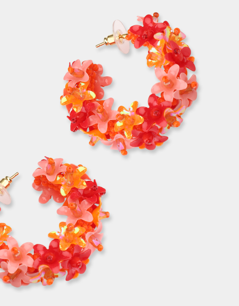 These delicate maroon small Flower Hoops are made of beads and flower sequins. Light to wear they are available in a variety of colors.