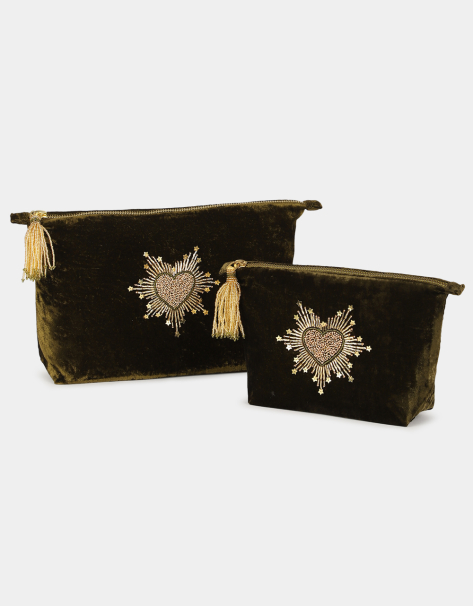 Inspired by "scapulars", our gold Hand Talisman Necklace is hand embroidered on thin leather and have a little pocket where you can put your lucky charm.
