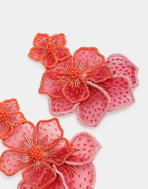Let yourself be transported to exotic destinations with our Hibiscus Bucket Bag. This structured bag, designed to be worn over the shoulder or on the arm, is a true invitation to travel. Its hibiscus flowers in shades of pink, red, and purple, accompanied by lush green leaves, are meticulously hand-embroidered.