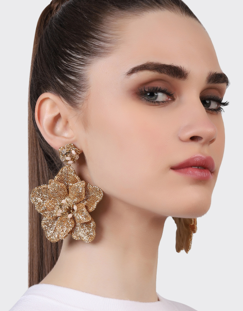 The golden Leaf earrings are hand-embroidered in the shape of a bouquet of leaves, a true tribute to nature. Made up of five finely assembled leaves, they create a subtle movement. They are available in several colors, each more vibrant than the last!