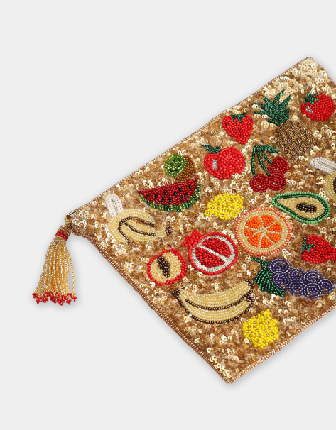 From our Fruits collection, the Mixed Fruits gold headband is finely hand-embroidered using different materials and techniques.