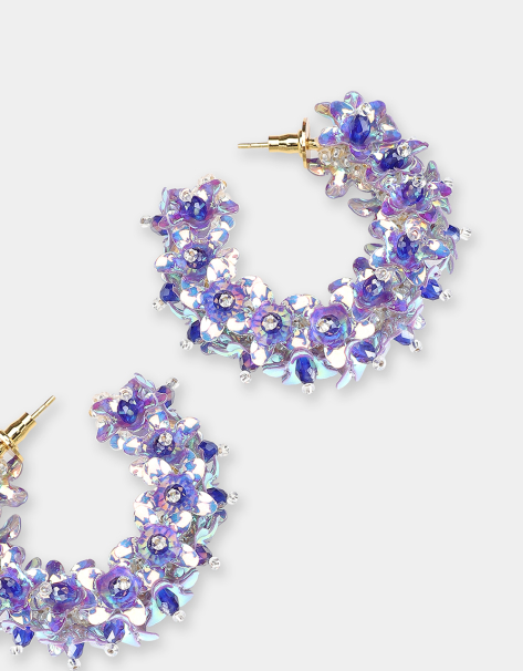 These delicate small multi blush Flower Hoops are made of beads and flower sequins. Light to wear they are available in a variety of colors.