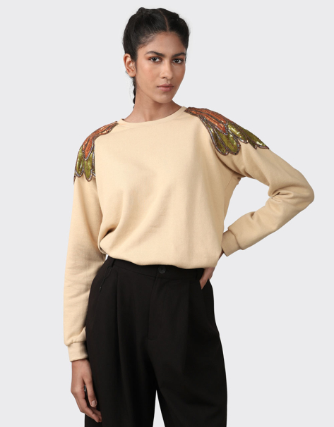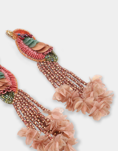 Composition: Seed beads, sequins, leather backing and gold plated brass post.