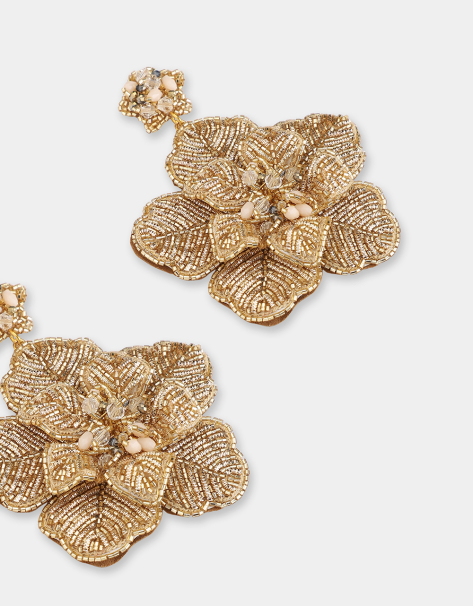 Inspired by Indian saris, this navy sweatshirt features multicolor flowers embroidered on the sleeves and is to be worn like a piece of jewelry.