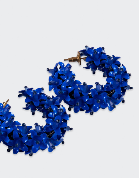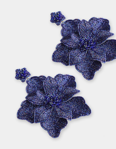 Hand embroidered navy Sparkle Heart Brooch. Inspired by the sacred heart imagery found from Sicily to Mexico, this statement brooch adds sparkle to a jacket or a simple T-shirt.