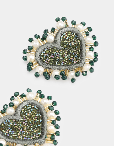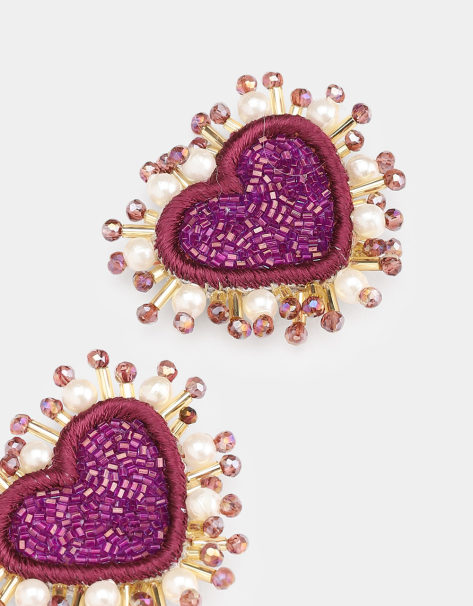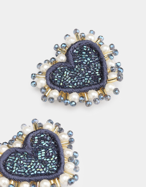 Hand embroidered black Heart Earrings. Inspired by the sacred heart imagery found from Sicily to Mexico, these statement earrings will add sparkles to your outfit.