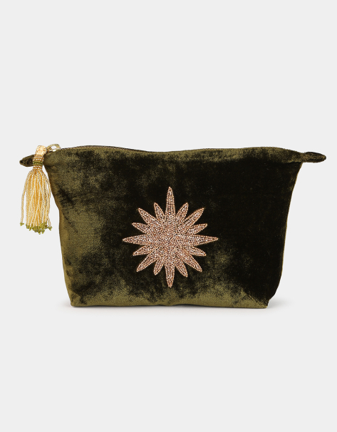 Hand embroidered green Heart Earrings. Inspired by the sacred heart imagery found from Sicily to Mexico, these statement earrings will add sparkles to your outfit.