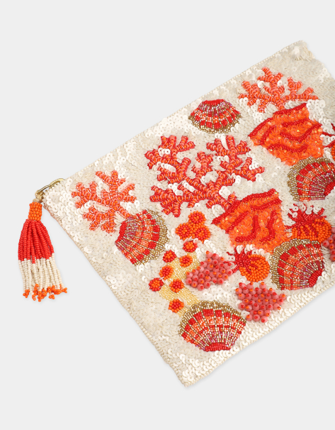Coral Starfish Bracelet, adorned with hand-embroidered golden starfish. Light and refined, it evokes the gentle spirit of summer and the subtle charm of marine-inspired accessories. Can be worn alone or stacked.