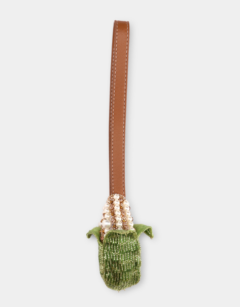 This season, the Turnip brooch, entirely hand-embroidered, is inspired by the vegetable garden. A unique piece made of seed beads.