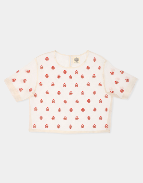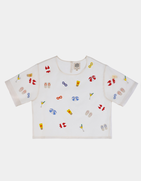 To wear like jewelry under the sun. Our silk organza tops, light and hand-embroidered, alongside our sweatshirts and jackets made from Suzani fabrics.